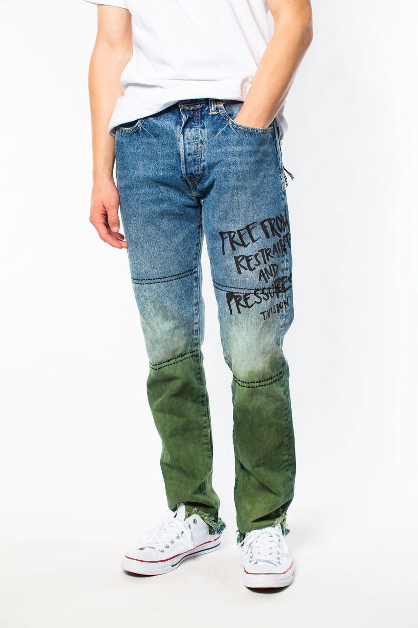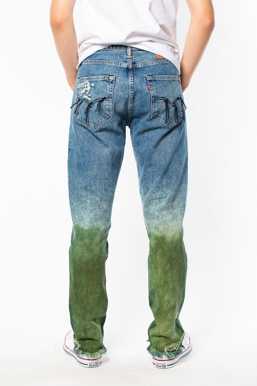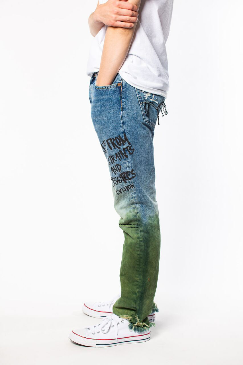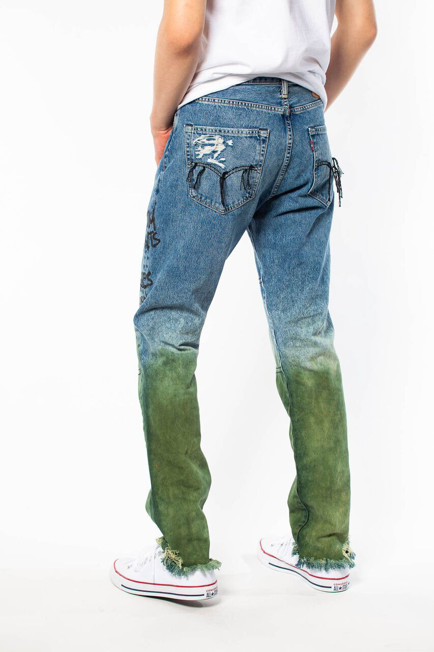 The design inspiration for this piece comes from the inner workings of an artist. Tiffany wanted to put an artist's perspective into the jeans, showing how they would wear it and make it their own. The jeans show the process of their art.